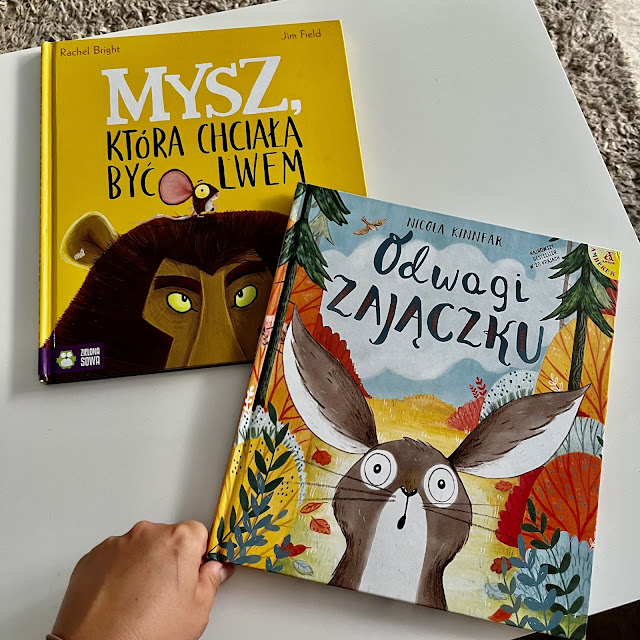 Te dwie pozycje bardzo wyróżniają się na tle innych naszych książek. Cudowne rysunki, humor, rymy, melodyjność tekstu i do tego wszystkiego w obu po prostu fantasyczne przesłanie sprawiają, że sama najczęściej właśnie je wybieram do wieczornego czytania. Jeśli miałabym Wam polecić z całego tego zestawu jedną książkę, którą koniecznie powinniście kupić to byłaby to właśnie ta o Myszy i Lwie :)
